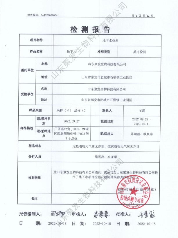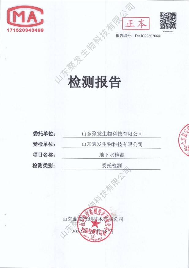 山东HJC888黄金城化工集团有限公司地下水检测报告