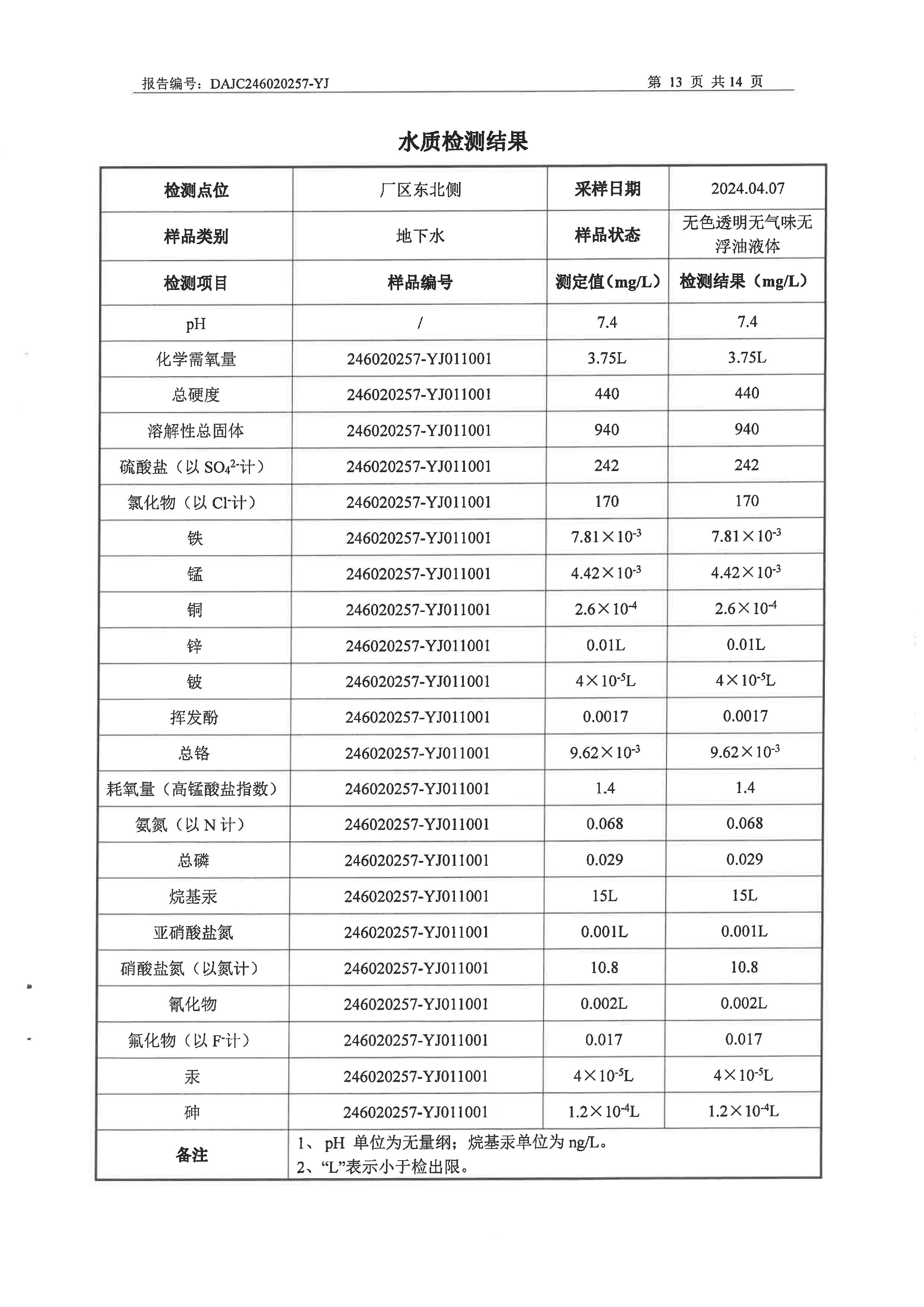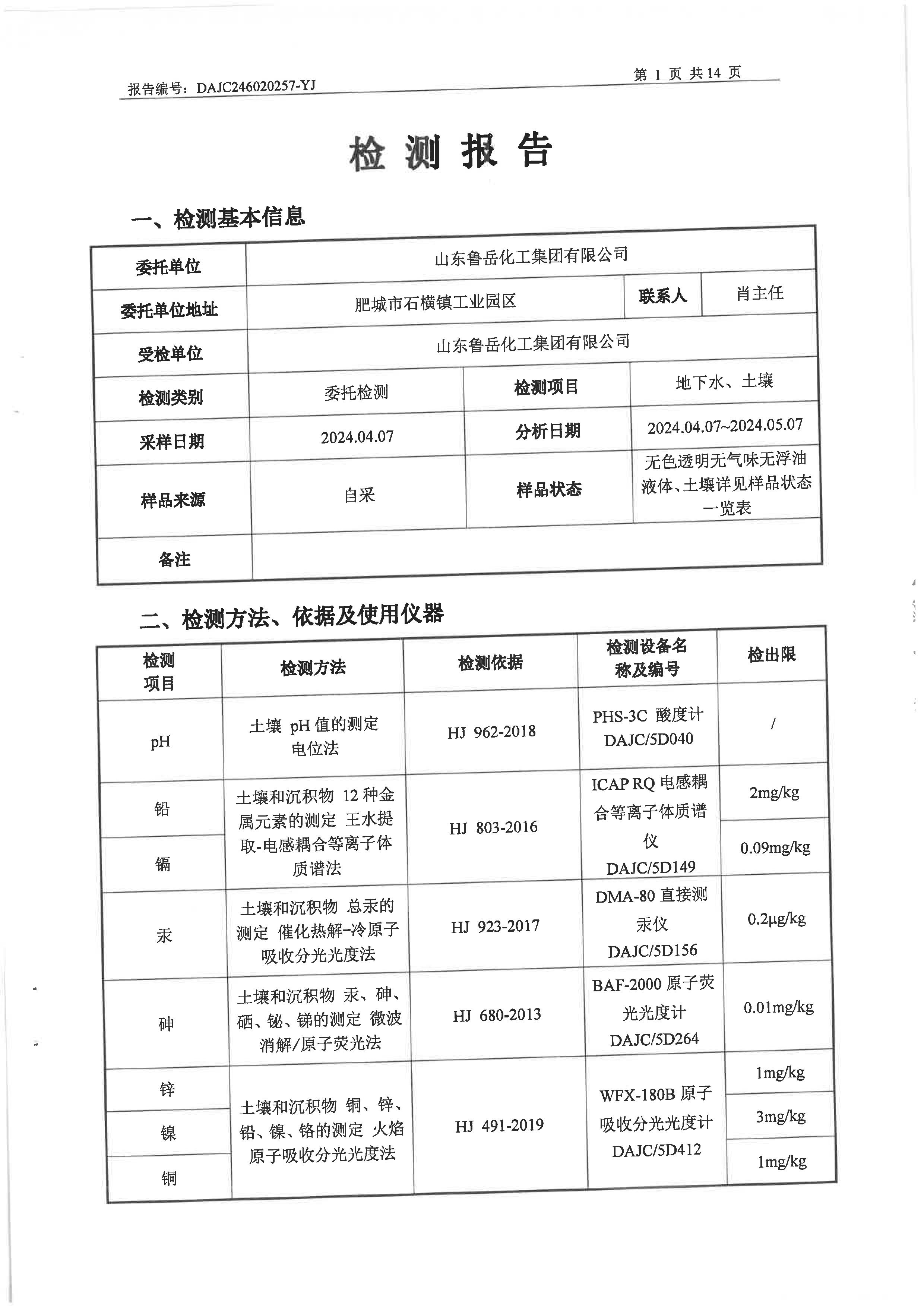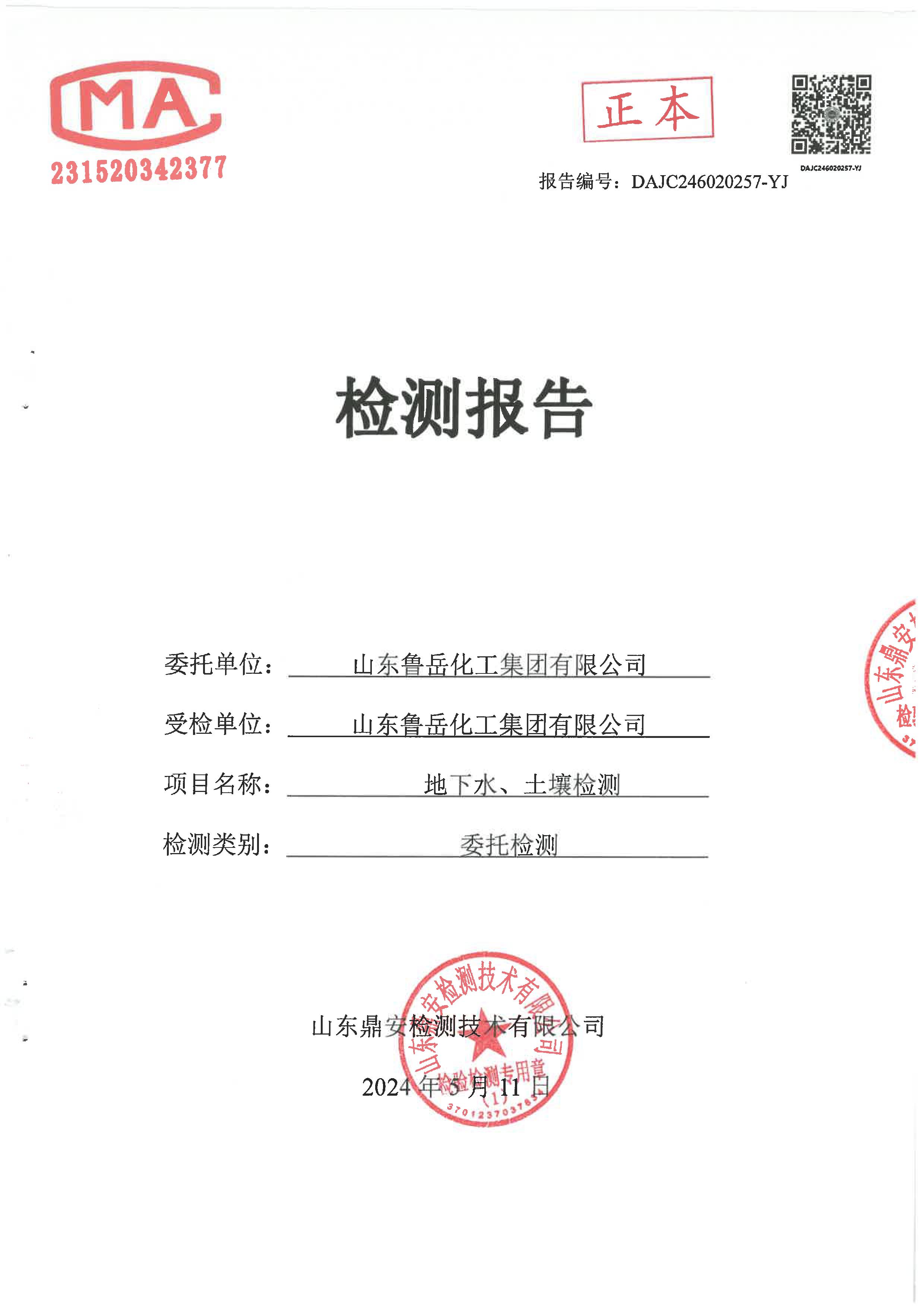 山东HJC888黄金城化工集团有限公司地下水土壤检测报告