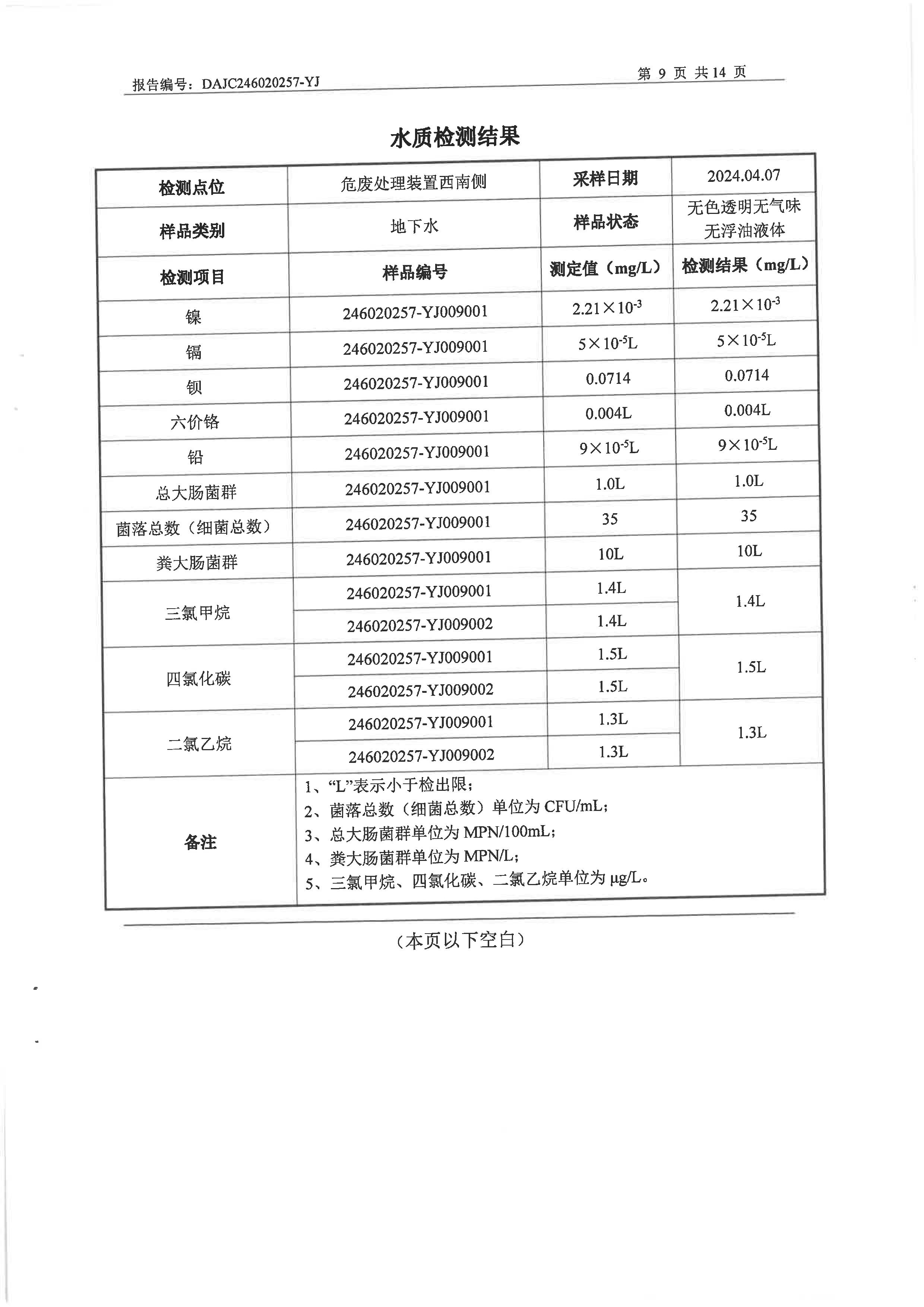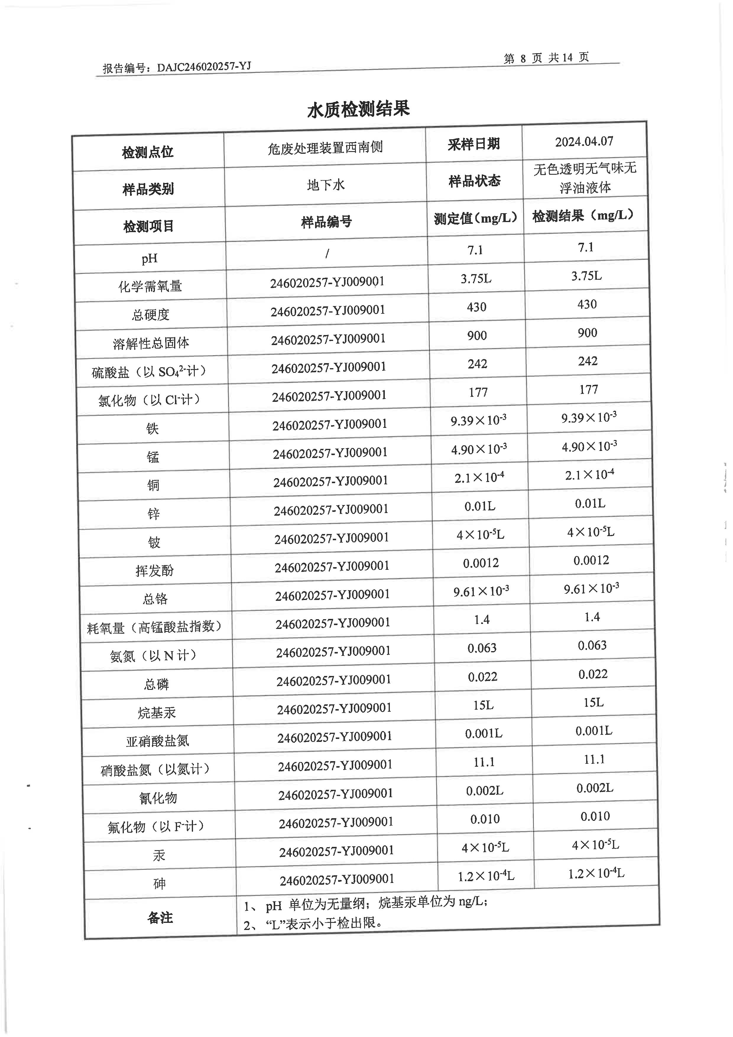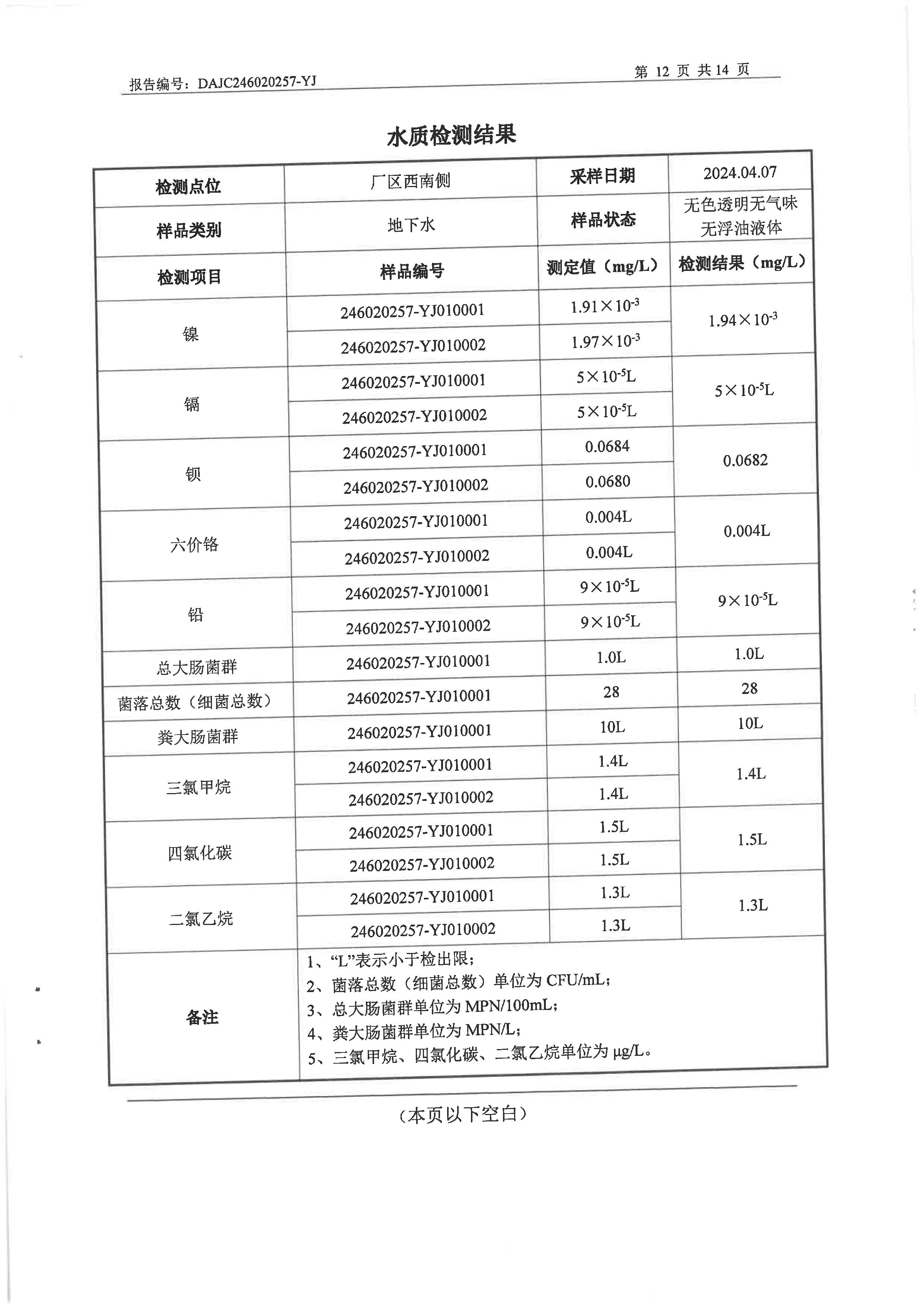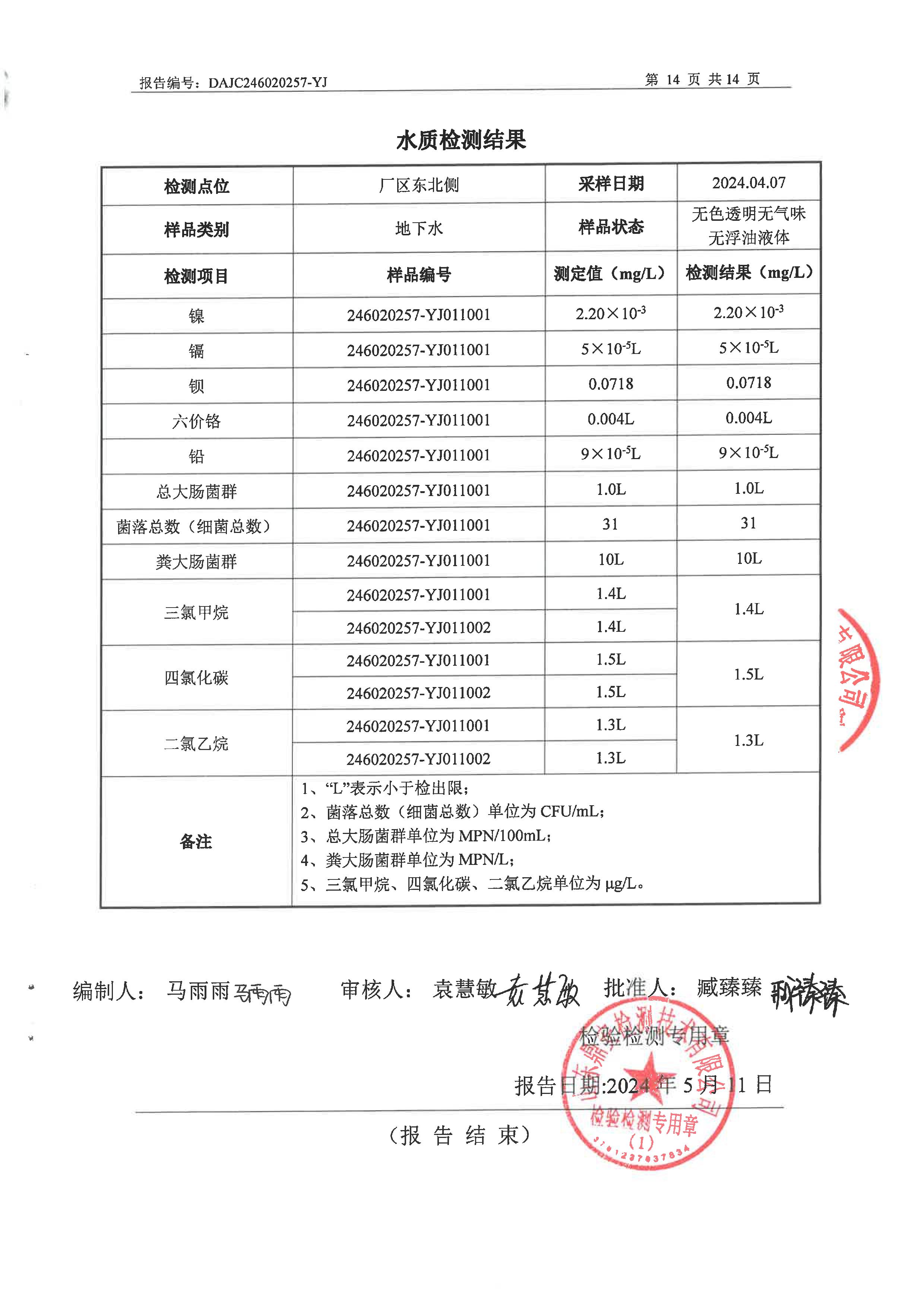 山东HJC888黄金城化工集团有限公司地下水土壤检测报告