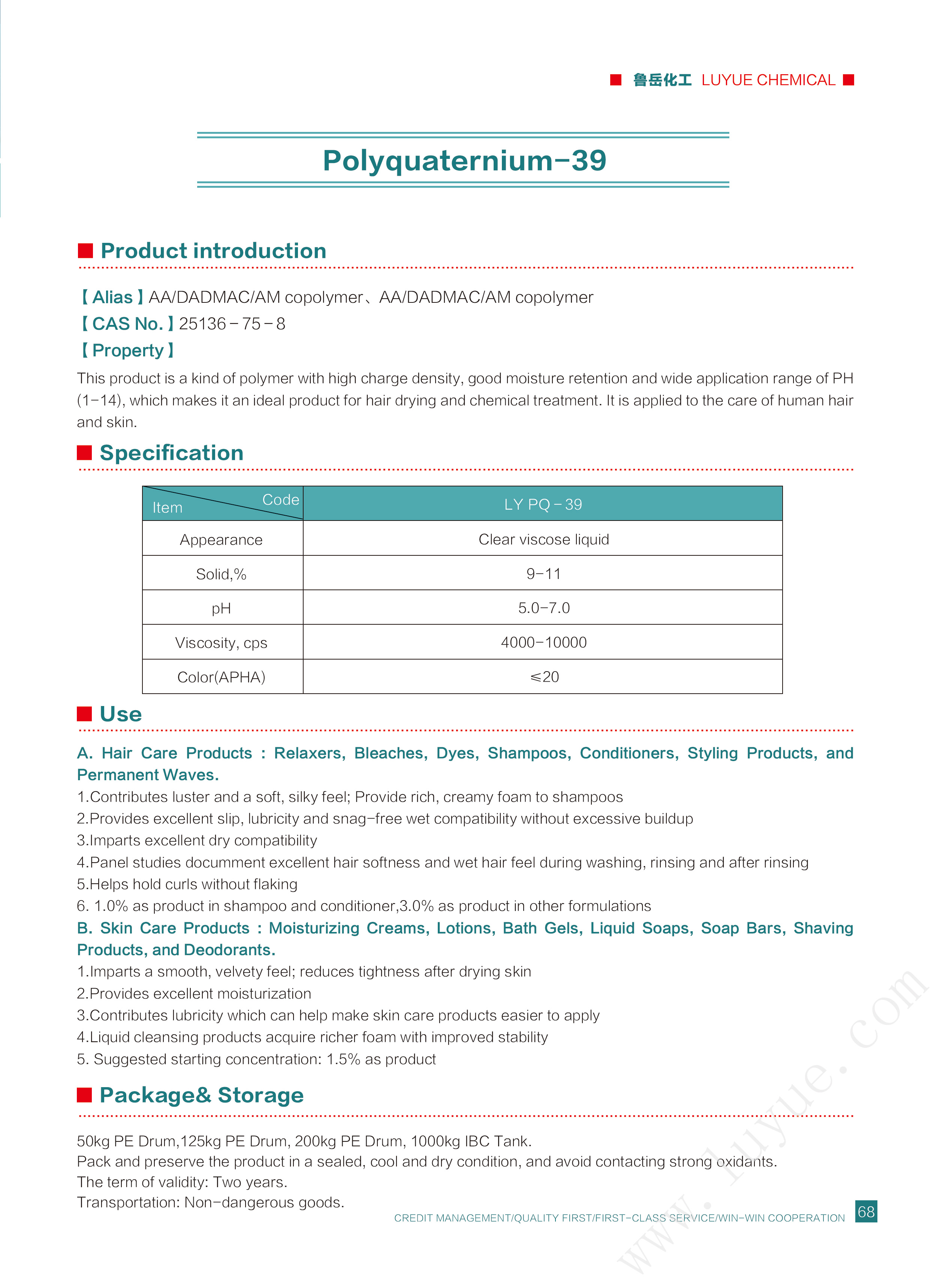 产品中心 > 聚季铵盐39 > 聚季铵盐39