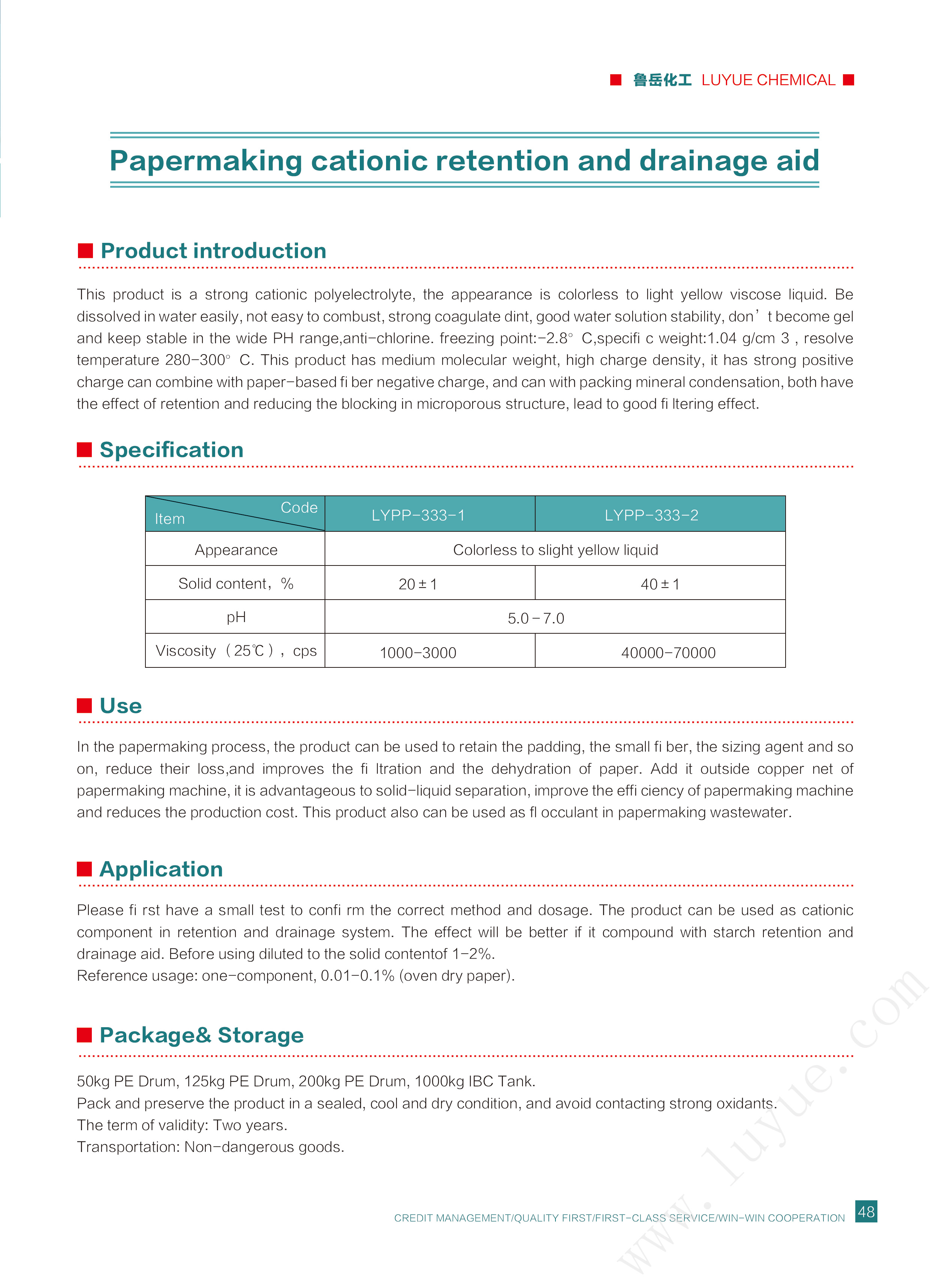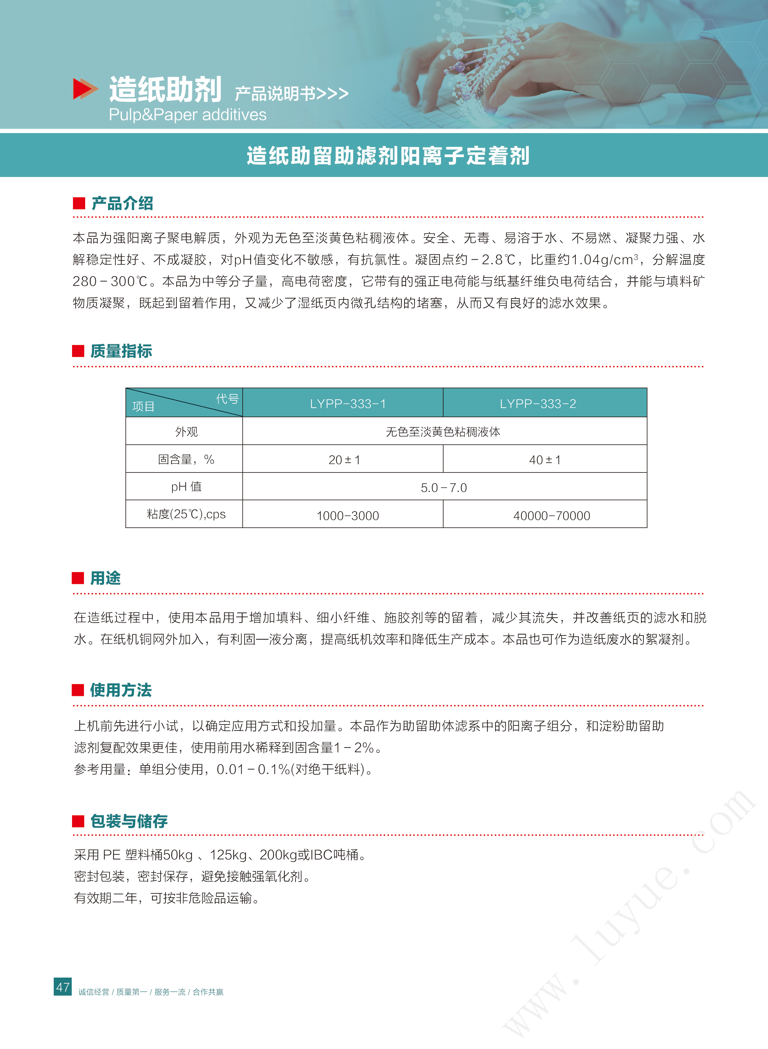 造纸助留助滤体系阳离子定着剂